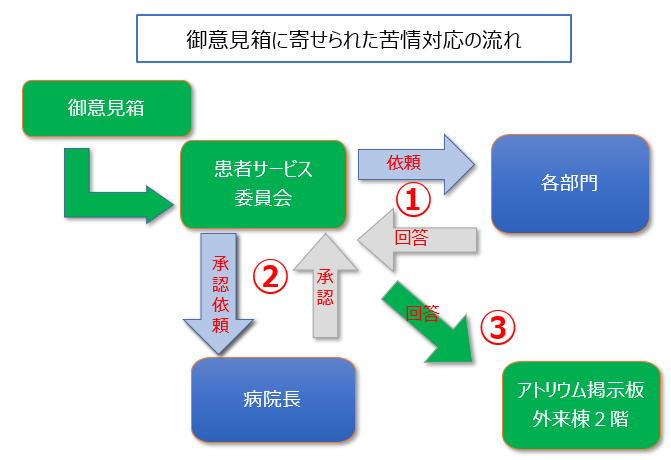 ①「ご意見・ご要望」が患者サービス委員会から各部門へ送付されます。